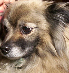 Canterbury's Little Lauren (Lilly) - daughter of Lorna,           another champion retiree from the show ring. Pure joy, lap dog and adventuress           supreme, Lilly came to Sananjaleen/June Hughes at seven years old. She ADORED her           mother and was forever torn between sitting on Sananjaleen's lap or           hers. Lilly was openly outrageous, and one day (when they were out and           about on Therapy Dog 'duty'), she found a glorious big box of chocolates           on top of a table, and toppled it onto the floor to share with her beloved           mummy. Chocolate is poison for dogs. Lilly is now working with Lorna           to help other animals. She was with Sananjaleen and friends for only           two very special years. Linus is a Pomeranian mix, born in Albuquerque, New Mexico. Intelligent, funny, smart, and loyal, he does numerous tricks and loves to show off his physical acrobatics with wondrous agility for mere bones. He understands English, although his bilingual nature is non-verbal. He came to Lynn in 1994 and has served for many years in the capacity of the "Best of the Best" and the "Cutest of the Cute," not to mention, "The Faithful One," and is in the angelic order of Dogs.... a superior order of Beings! In fact his nickname is "Angel Dog." He is a much cherished being in this world! Lynn loves to sing to him. Some of their favorite songs include, "There is Nothing Like a Dog," "My Puppy Lies Over The Ocean," "How Much is that Linus in the Window?", "Liiiiiinus, How I love you, How I love you, My dear old Linus," and many more! When Lynn is not with Linus she works with disabled teenagers at Boulder High in beautiful Boulder, Colorado, or if it's summer you may find her swimming! *Addendum: in Winter 2010, Linus crossed over the Rainbow Bridge after a long life of service and companionship to his friend, Lynn.